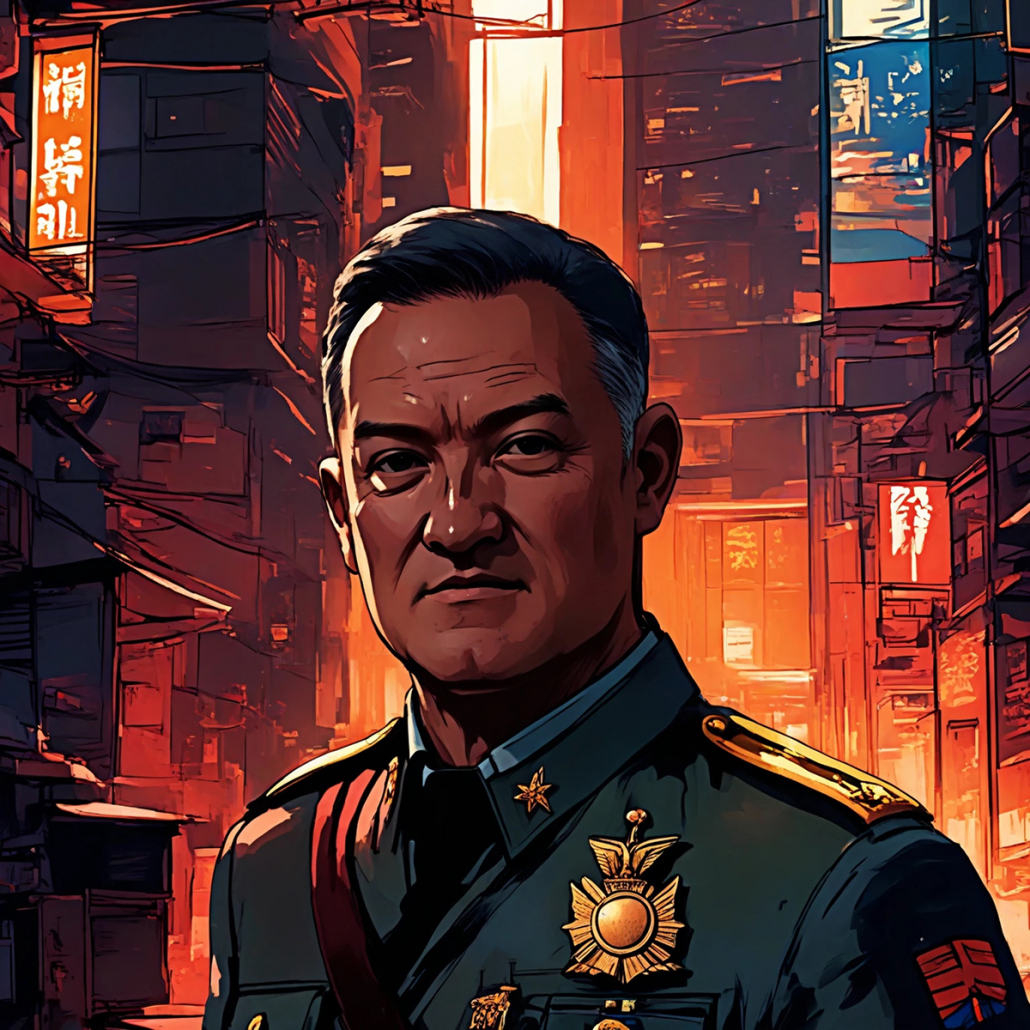 These days, The Generalissimo is more myth than man. They say he once gambled an entire shipment of rocket launchers in a high-stakes poker game… and won. They say he has a secret base hidden in the Kowloon Walled City ruins, guarded by mercenaries, stray dogs, and flamethrower turrets. They say he’s working on “the ultimate arms deal” that will shake the world… but no one knows what it is. But here’s the thing about The Generalissimo: every insane rumor about him is probably true. And when you see a white military coat, gold epaulets, and a wild grin approaching, you know two things: something big is about to happen and there’s a 50/50 chance it ends in an explosion. Because in the world of war, The Generalissimo is the one rolling the dice… and they’re always loaded.